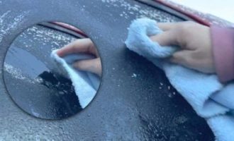 Στο βίντεό της, έδειξε πώς έριξε μηλόξυδο σε ένα ψεκαστήρα “χωρίς τίποτα άλλο” και το ψέκασε στο παγωμένο παράθυρο του αυτοκινήτου. Στη συνέχεια, σκούπισε την επιφάνεια με ένα πανί μικροϊνών για να αφαιρέσει τυχόν εναπομείναντα πάγο.