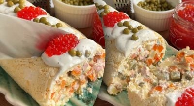Μια συνταγή που θα εκπλήξει ακόμη και τους πιο επιλεκτικούς καλεσμένους – σαλάτα “Olivier” σε ρολό. Η γεύση είναι η ίδια, αλλά η παρουσίαση είναι εντελώς διαφορετική, ένα τέτοιο πιάτο θα γίνει μια πραγματική διακόσμηση του τραπεζιού. Μια εξαιρετική ιδέα για όσους περιμένουν φίλους να τους επισκεφθούν.