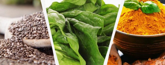 Τσία, σπανάκι και κουρκουμάς – υπερτροφές / κολάζ από My, photo by depositphotos.com